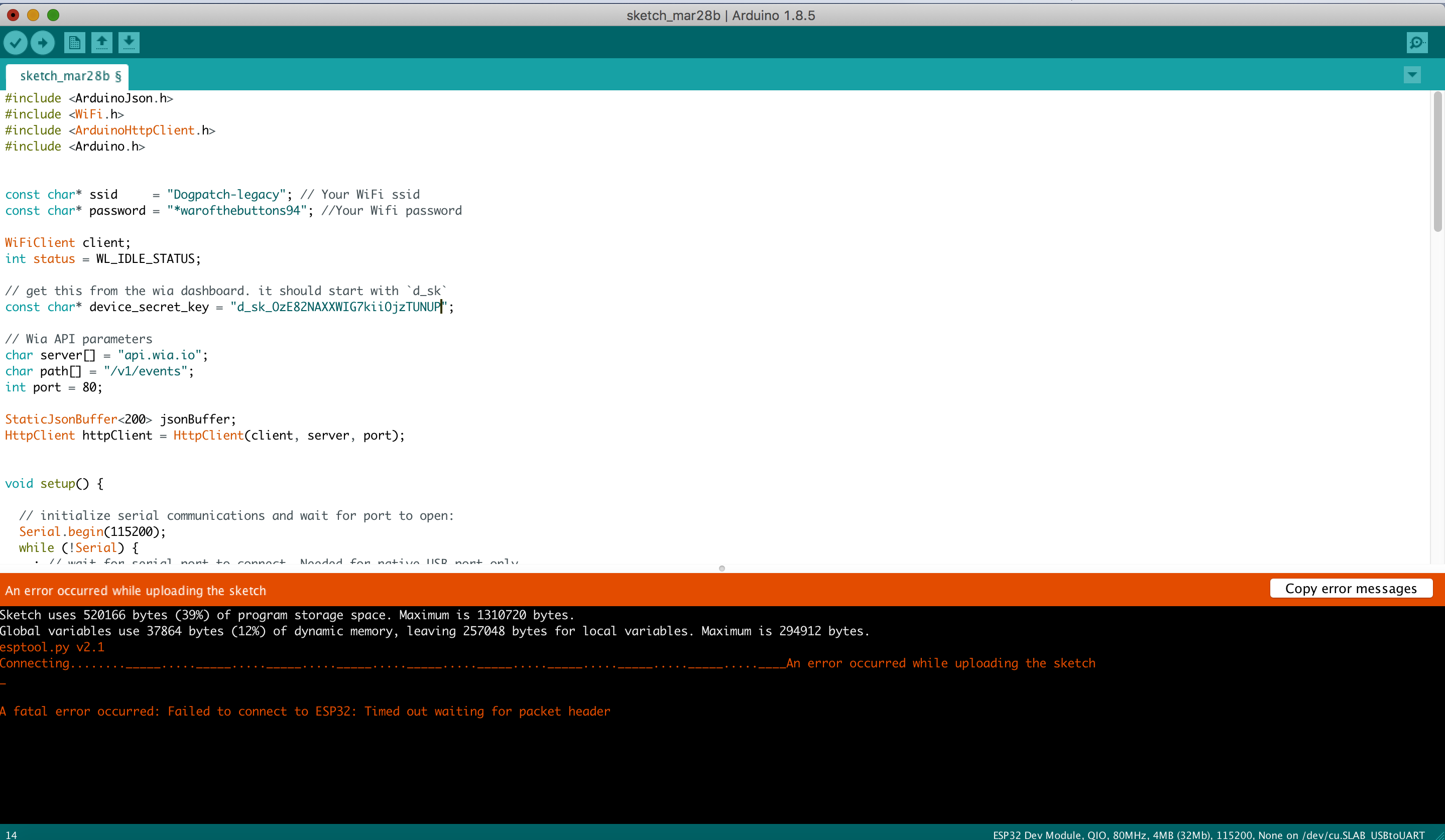 with your device secret key from the Wia Dashboard (the one that begins withd_sk