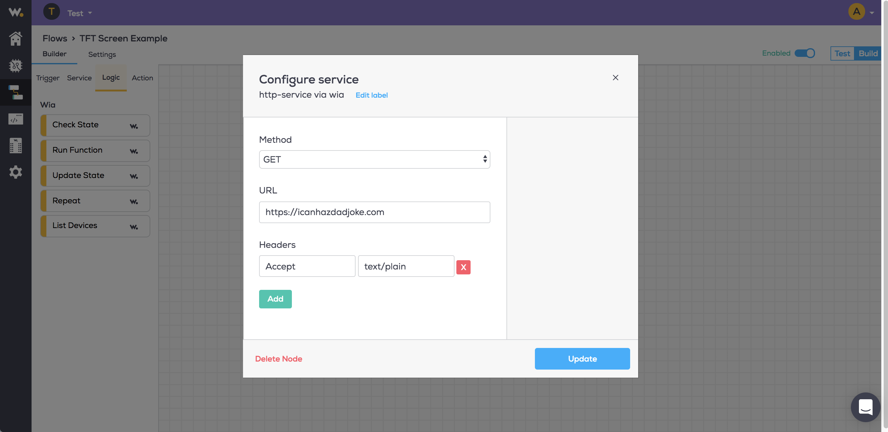 - Next set the Header > value to text/plain. This is the type of input which the state holds and for our purposes it is text (the joke) from the website and then press Update.
