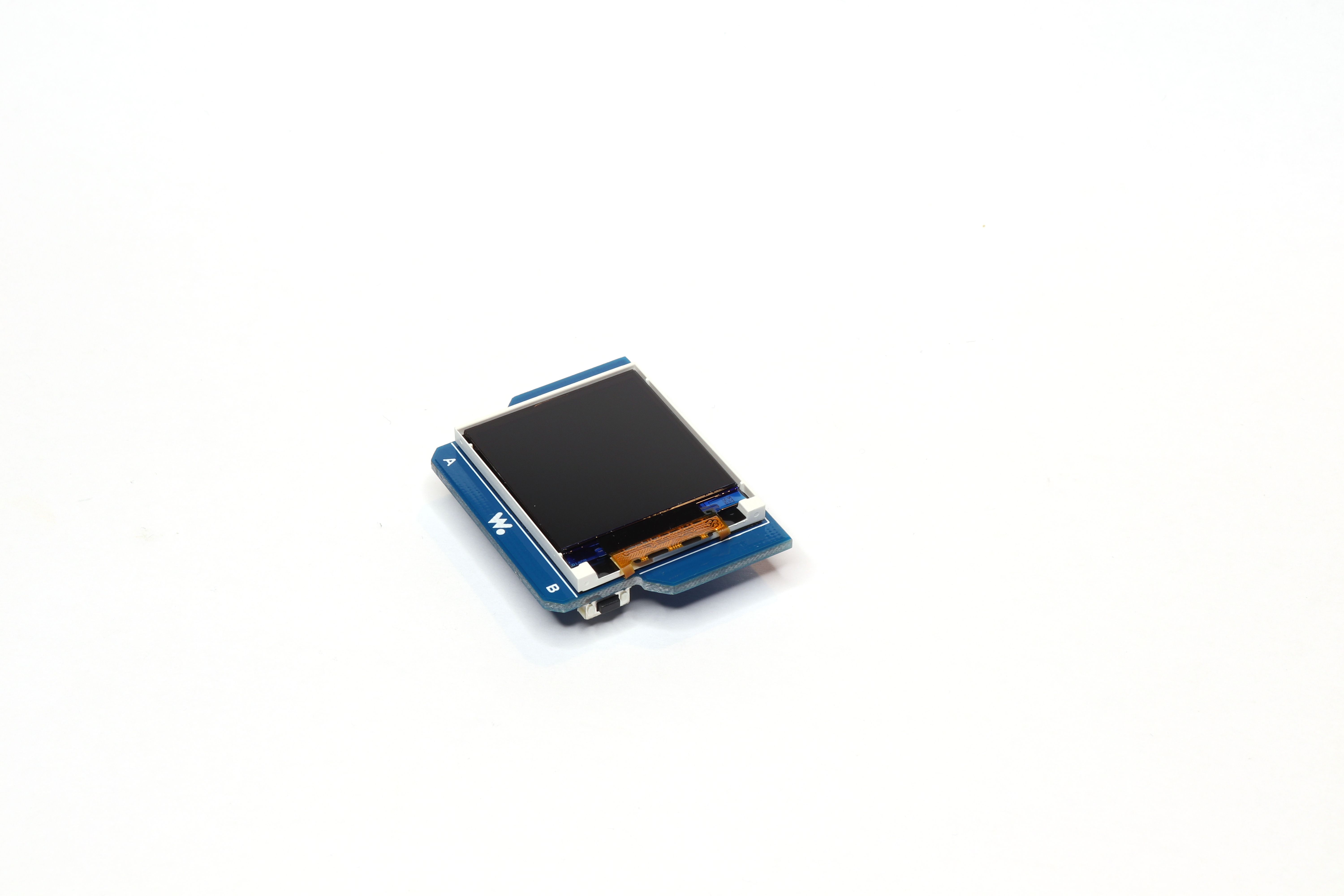 Insert the TFT Screen module on top of the Wia Dot One. Take care to connect the module pointing in the correct direction as shown on the picture above. You will notice that the rounded corners of the boards correspond to each other when inserted correctly.